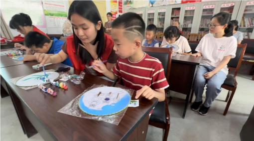 活動(dòng)中大學(xué)生志愿者由一些哲學(xué)概念和問題作為切口,通過大量故事,用平易近人且妙趣橫生的語(yǔ)言,將深?yuàn)W的哲學(xué)知識(shí)用直白樸實(shí)的方式介紹給同學(xué)們,并將其與實(shí)際相結(jié)合,緊扣新時(shí)代社會(huì)主義核心價(jià)值觀,趣味中不失內(nèi)涵,干貨滿滿也并不枯燥,成功激起了大家對(duì)哲學(xué)的興趣。孩子們被這些新奇的知識(shí)深深吸引,不時(shí)發(fā)出驚嘆和疑問。在接下來(lái)的手工制作課上,孩子們更是熱情高漲。志愿者們?yōu)楹⒆觽儨?zhǔn)備了空白的絹扇,畫筆等工具。在老師的示范和指導(dǎo)下,孩子們紛紛動(dòng)手,發(fā)揮自己的想象力,創(chuàng)造出了一個(gè)個(gè)獨(dú)具特色的作品??粗约旱膭趧?dòng)成果,孩子們的臉上洋溢著自豪和滿足的笑容。
