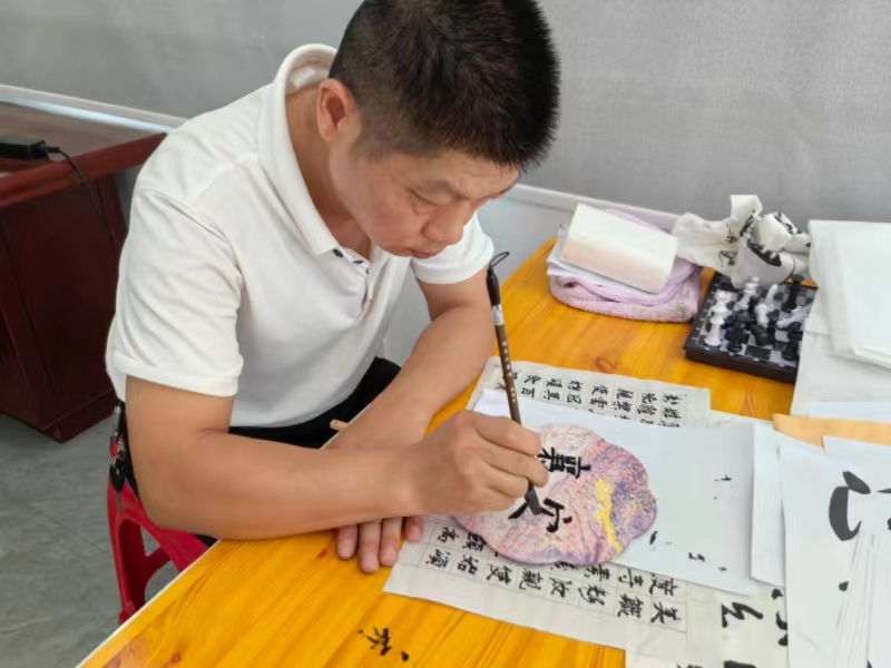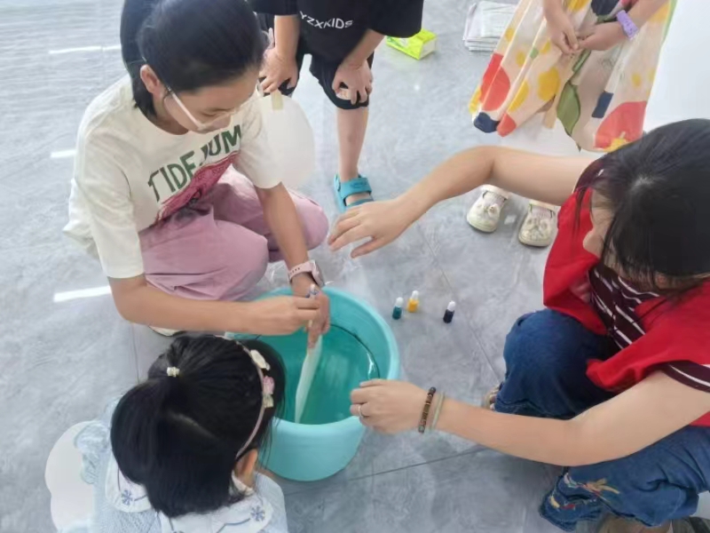 活動現(xiàn)場,襄安鎮(zhèn)新時代文明實踐所志愿者身穿紅色馬甲,向?qū)W生們介紹非遺漆扇歷史傳統(tǒng)知識、起源、制作工藝和方法,圍繞“文明閱讀、健康成長”主題,講解掃黃打非知識,教會學生如何辨別什么是黃、什么是非,認識非法出版物和盜版書籍的危害,引導學生多讀書、讀好書、培養(yǎng)良好的閱讀習慣,遠離有毒有害書籍。隨后,學生們在志愿者的帶領下,選擇自己喜歡的扇子形狀和大漆顏色,將松節(jié)油稀釋調(diào)好色的漆仔細小心地滴在清水盆里,各種顏色的漆漂浮在水面上,孩子們雙手握住漆扇,調(diào)整角度緩緩旋轉下扇子,沉入提轉間一把精美的漆扇就制作完成了,最后,孩子們將扇子晾干后走到襄安書畫院老師面前進行題字。“護苗”“清源”“秋風”……一把把題好字的漆扇就完成了。孩子們拿到各自獨特的漆扇,臉上都洋溢著幸福的笑容。