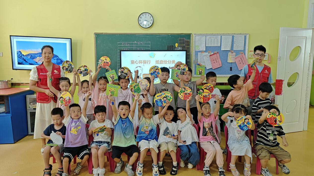 在志愿者的指導(dǎo)下,小朋友們不僅學(xué)會(huì)了如何區(qū)分可回收物、有害垃圾、廚余垃圾和其他垃圾,還通過自己的創(chuàng)意,將這些“垃圾”變成了紙盤上的藝術(shù)品。