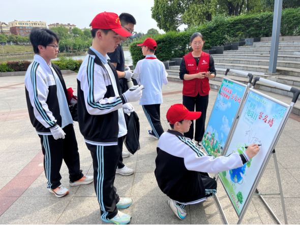 “我承諾,從自身做起,不向河道亂扔垃圾,積極參與河道保護活動?!币幻袑W生在簽名后堅定地說道。
