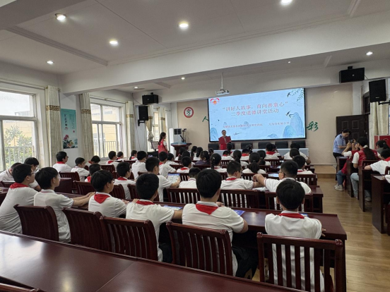 活動開場,悠揚(yáng)的《三德歌》旋律緩緩響起,浸潤著每一位師生的心靈,為活動拉開了溫潤而莊重的序幕。大家齊聲合唱,用童聲傳遞著對道德的崇尚,用旋律匯聚向善向好力量。