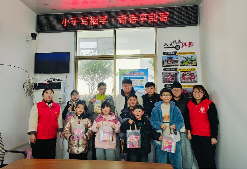 書寫環(huán)節(jié)中,孩子們認(rèn)真投入、凝心聚力,一筆一畫地書寫著福字。志愿者分組全程陪伴指導(dǎo),耐心解答書寫疑問,同時(shí)鼓勵(lì)有基礎(chǔ)的孩子發(fā)揮創(chuàng)意,書寫不同字體的福字。雖然筆法略顯稚嫩,但每一個(gè)福字都飽含童真與美好期盼,墨香縈繞間,孩子們的歡聲笑語不斷,現(xiàn)場(chǎng)氛圍溫馨喜慶?;顒?dòng)最后,孩子們紛紛展示自己的作品、交流書寫心得。村“兩委”為孩子們發(fā)放裝有親手寫的福字和甜蜜糖果的新春禮盒,傳遞新春的溫暖與祝福。