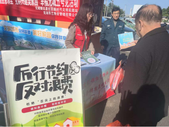活動現(xiàn)場,崇尚節(jié)約的宣傳材料已早早就位。志愿者結(jié)合宣傳展板內(nèi)容向居民發(fā)放宣傳單頁,講解節(jié)約意識的重要性,同時志愿者圍繞餐飲浪費(fèi)的危害、食材儲存的必要性、家庭節(jié)約妙招等生活實(shí)用常識,通過生活化的宣傳點(diǎn)將節(jié)約意識深入人心。