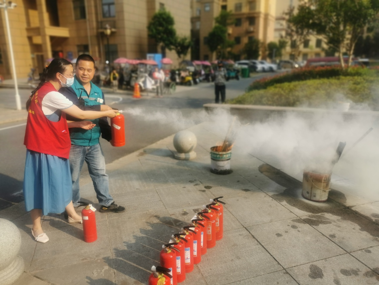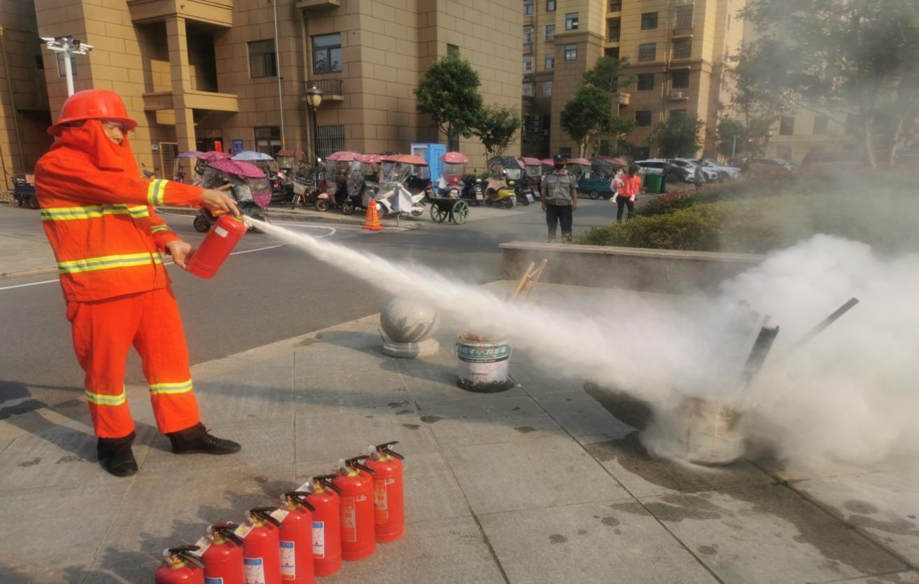 演習(xí)開始前,物業(yè)應(yīng)急救援隊(duì)隊(duì)長向居民代表、物業(yè)人員及社區(qū)工作人員講解了消防知識和滅火器使用方法、分解動(dòng)作以及注意事項(xiàng)。要求大家認(rèn)真學(xué)習(xí),動(dòng)手操作,真正掌握撲救火情的技能。然后手持滅火器現(xiàn)場實(shí)戰(zhàn)演示了滅火技巧與要領(lǐng)。隨后,社區(qū)工作人員、志愿者、物業(yè)人員以及居民代表紛紛踴躍上場嘗試使用干粉滅火器滅火。