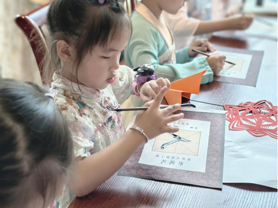 活動以“紙飛機(jī)簽到”點(diǎn)燃熱情,學(xué)員們在彩紙上寫下心愿,折成紙飛機(jī)投向指定區(qū)域,既讓簽到趣味十足,又象征著逐夢之旅的開啟。傳統(tǒng)文化體驗區(qū)同樣熱鬧,書法老師揮毫寫下“花間渡學(xué)堂”“啟新”等字,剪紙老師巧手剪出寓意美好的造型,讓學(xué)員們感受傳統(tǒng)手工藝的魅力。