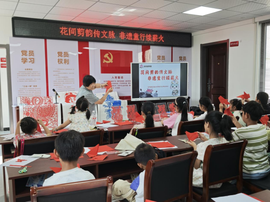 8月4日上午,花渡社區(qū)新時(shí)代文明實(shí)踐站開展了以“花間剪韻傳文脈 非遺童行續(xù)薪火”為主題的剪紙課堂,特邀非遺傳承人孫瓊?cè)A老師現(xiàn)場(chǎng)授課,近30名社區(qū)青少年在剪刀與紅紙的碰撞中,感受傳統(tǒng)技藝的獨(dú)特魅力。