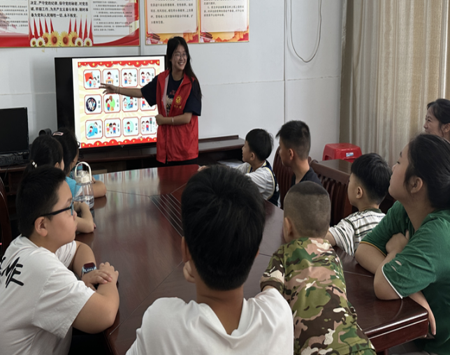 志愿者為孩子講解文明城市創(chuàng)建的意義