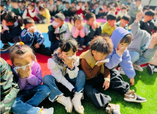 了解火災(zāi)危害,掌握逃生技巧。在陶行知幼兒園開展消防安全疏散演練活動,隨著警報的響起,同學(xué)們在各班老師的帶領(lǐng)下,按照指定路線,彎著腰,用毛巾、濕巾等捂著口鼻,迅速且有序地撤離到校園的安全地帶。