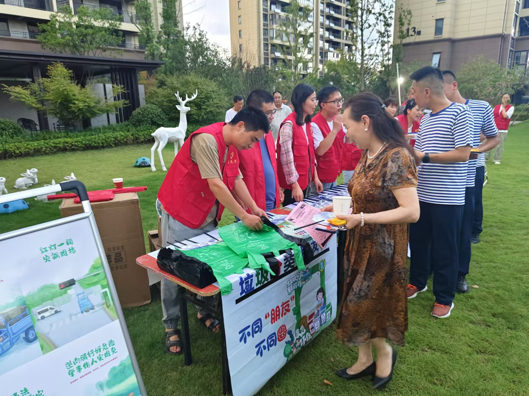 活動現(xiàn)場,花渡社區(qū)精心布置了宣傳區(qū)域,通過向居民發(fā)放垃圾分類宣傳手冊和垃圾袋的方式,呼吁居民們要從自身做起,從點(diǎn)滴小事做起,養(yǎng)成垃圾分類的好習(xí)慣。在宣傳過程中,社區(qū)工作人員耐心地為居民們講解垃圾分類的知識,從為什么要分類、如何分類到分類后的處理流程,一一進(jìn)行了詳細(xì)地說明。還特別強(qiáng)調(diào)了垃圾分類對于保護(hù)生態(tài)環(huán)境、促進(jìn)資源循環(huán)利用的重要意義。