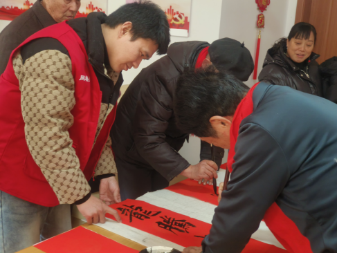 活動(dòng)中,社區(qū)書(shū)法愛(ài)好者及志愿者們齊聚一堂,現(xiàn)場(chǎng)揮毫潑墨,為社區(qū)居民書(shū)寫(xiě)了一幅幅寓意吉祥、飽含新春祝福的春聯(lián)。這些春聯(lián)不僅傳遞了人們對(duì)新年的美好期盼,也彰顯了中華民族深厚的文化底蘊(yùn)和民族團(tuán)結(jié)的精神。居民們手捧春聯(lián),臉上洋溢著幸福的笑容,紛紛表示感受到了社區(qū)的溫暖與關(guān)懷。除了書(shū)寫(xiě)春聯(lián),社區(qū)工作人員還向居民們贈(zèng)送了紅圍巾。這些鮮艷的紅圍巾,不僅在冬日里為大家?guī)?lái)了溫暖,更寄托著對(duì)新年紅紅火火的美好祈愿,象征著民族團(tuán)結(jié)和和諧共處的美好愿景 。