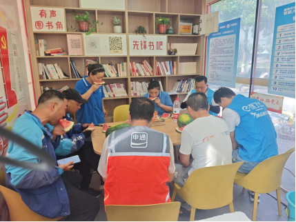 工作人員將西瓜和防暑禮包逐一分發(fā)到快遞員、外賣員、環(huán)衛(wèi)工人的手中??爝f員小王笑著說:“天再熱,收到甜西瓜,渾身都有勁兒了!”外賣員小李也連連點(diǎn)贊:“驛站平時(shí)能歇腳喝水,現(xiàn)在又送西瓜和防暑用品,真是太貼心了!”