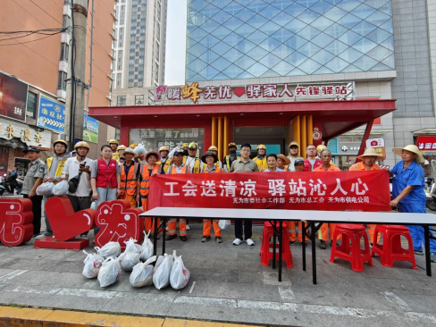 7月18日上午,太平社區(qū)聯(lián)合市總工會(huì)、無為供電公司工會(huì),在工會(huì)驛站共同開展“夏日送清涼 驛起動(dòng)起來”主題活動(dòng),為一線環(huán)衛(wèi)工人、外賣小哥、電力搶修人員等戶外勞動(dòng)者送上清涼物資與暖心問候。
