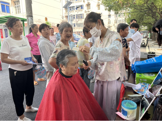 社區(qū)志愿者為有需要的居民提供免費(fèi)理發(fā)服務(wù)。在義剪服務(wù)中,理發(fā)師耐心地詢(xún)問(wèn)居民需求后,揮舞手中的理發(fā)工具,或剪或剃,細(xì)心地為每一位居民修剪頭發(fā),同時(shí)熱情地和他們聊家常,現(xiàn)場(chǎng)氣氛溫馨和諧。清爽的發(fā)型不僅提升了老人們的精神面貌,也傳遞了社區(qū)的關(guān)愛(ài)。
