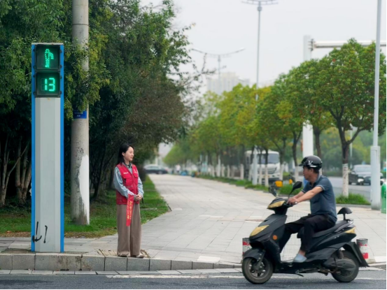 在轄區(qū)交通路口,雙橋社區(qū)的志愿者們身著紅色志愿馬甲,化身文明交通“引導(dǎo)員”。他們手持文明引導(dǎo)旗,耐心提醒非機動車駕乘人員佩戴安全頭盔、遵守交通信號;面對行人,他們熱情解答路況疑問,宣傳文明出行知識,讓文明交通的理念在每一次互動中傳遞。