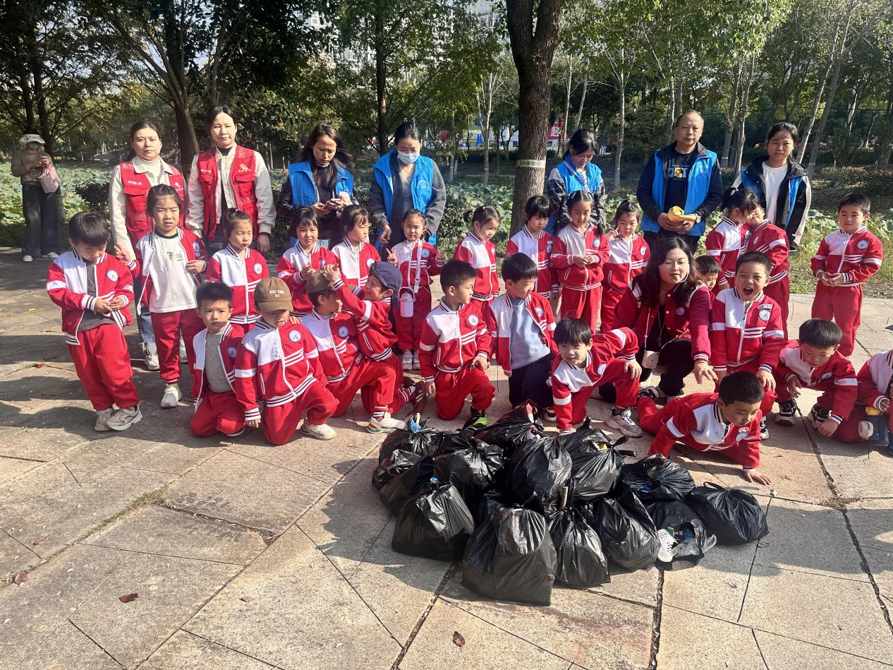 活動伊始,社區(qū)志愿者手持手套、垃圾夾子和垃圾袋,走進(jìn)幼兒中間,“小朋友們,這些‘小幫手’能幫我們做什么呀?”志愿者的提問瞬間點(diǎn)燃現(xiàn)場氛圍,孩子們紛紛舉手搶答。隨后,志愿者與幼兒園老師們教孩子們戴手套要像“穿小襪子”一樣,把手指一一對應(yīng)套好;用垃圾夾子時,力度要輕得像“夾小餅干”,既不夾碎“餅干”,又能穩(wěn)穩(wěn)抓住垃圾;撐開垃圾袋則要變成 “張開小口袋”,讓垃圾乖乖 “住進(jìn)去”……掌握手套、垃圾袋、夾子的正確用法后,“垃圾大作戰(zhàn)”正式開啟,志愿者與老師全程引導(dǎo),不僅提醒孩子們區(qū)分垃圾種類,還及時解決操作難題。遇到尖銳物品或難以處理的垃圾,孩子們會主動向成人求助,嚴(yán)守“安全第一”原則。活動中,孩子們彎腰撿拾、認(rèn)真分類,隨著一個個垃圾袋被裝滿,原本散落著落葉、塑料屑的綠化帶逐漸恢復(fù)整潔,一張張稚嫩的臉上滿是專注與自豪。