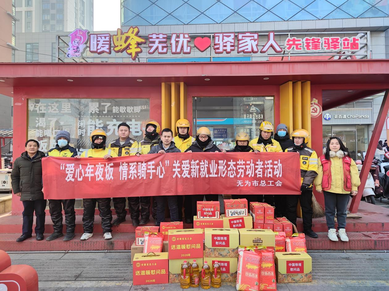 春節(jié)將至,年味漸濃。為傳遞城市溫度,致敬奮斗在基層一線的勞動(dòng)者,2月11日,無(wú)城鎮(zhèn)太平社區(qū)聯(lián)合無(wú)為市總工會(huì)、中國(guó)鐵塔公司、老鄉(xiāng)雞餐飲連鎖店共同開(kāi)展慰問(wèn)活動(dòng),為快遞騎手、外賣配送員等新業(yè)態(tài)群體送上新春禮包,用實(shí)際行動(dòng)詮釋對(duì)勞動(dòng)者關(guān)懷與致敬。