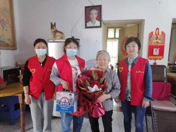 活動(dòng)中,志愿者們帶上鮮艷的康乃馨、可口的牛奶和水果走訪在每個(gè)單元,“送您一枝康乃馨,祝您母親節(jié)快樂(lè)!”當(dāng)工作人員將鮮花送到空巢老人胡阿姨家中時(shí),老人喜笑眉開(kāi),激動(dòng)地說(shuō):“這花真好看,讓我們這些兒女不在身邊的母親心里感到溫暖,我太開(kāi)心了!”今年73歲的胡阿姨早年喪偶,子女不在身邊,平時(shí)一人獨(dú)居。隨后,志愿者們又來(lái)到困難老人張阿姨家,張阿姨老伴重度殘疾今年去世,唯一的兒子患有自閉癥,全家沒(méi)有經(jīng)濟(jì)來(lái)源,生活十分困難。當(dāng)捧著志愿者送上的鮮花,張阿姨露出久違的笑容:“謝謝你們,謝謝政府還掛念我,關(guān)心我,這還是頭一回有人給我送花!”,志愿者陪她們聊天,了解她們的生活所需、心理健康需求等,讓她們享受到“社區(qū)女兒”在身邊的溫馨。