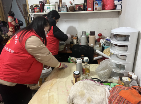 金河社區(qū)組織志愿者上門改善殘疾孤寡老人的生活環(huán)境,志愿者們有序地幫助老人打掃衛(wèi)生、擦桌子、整理房間、收拾零散物品等。