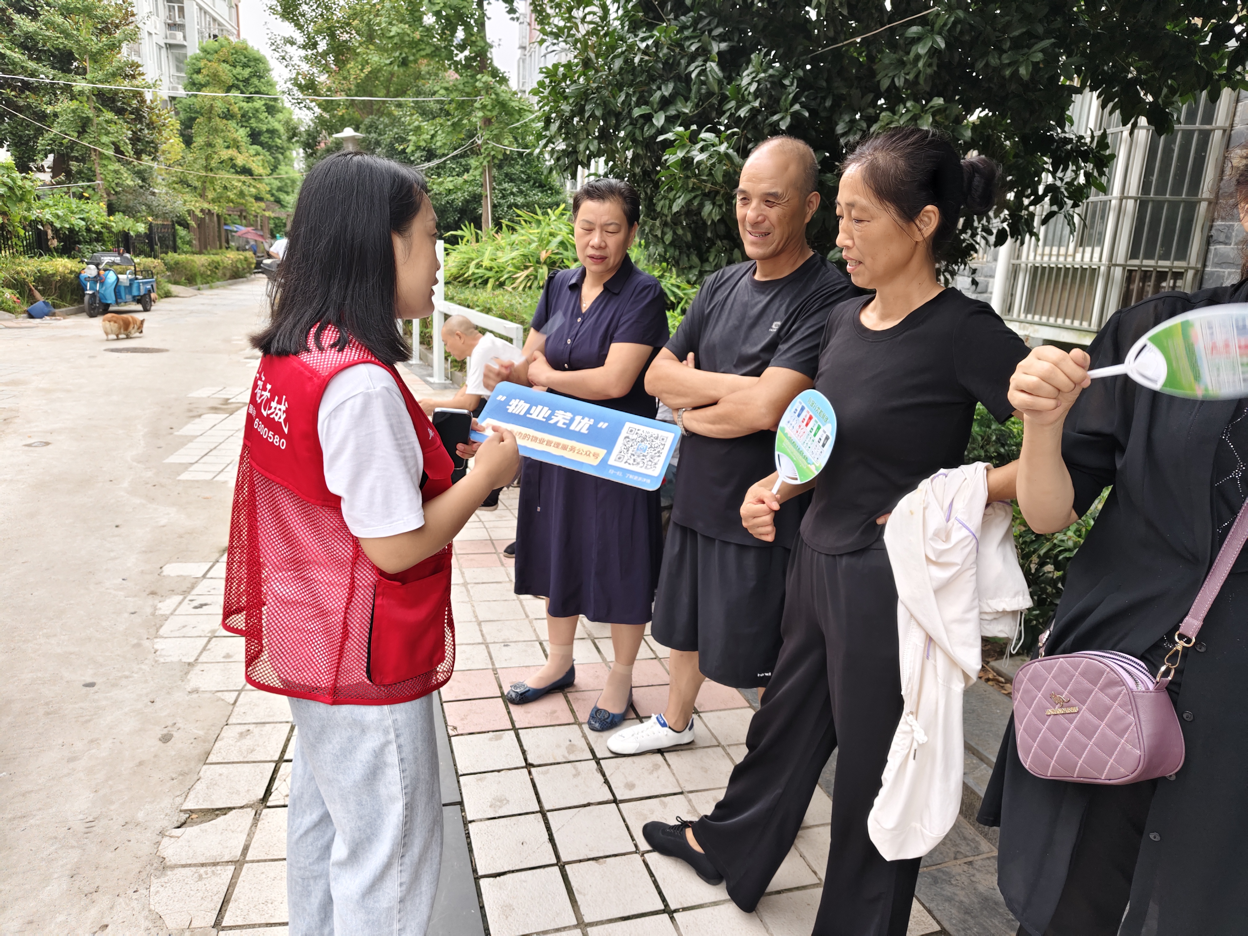 在小區(qū)內(nèi),泰山社區(qū)志愿者聯(lián)合物業(yè)公司在單元樓道張貼“物業(yè)蕪優(yōu)”宣傳海報(bào),并向來(lái)往居民發(fā)放宣傳單頁(yè),進(jìn)行面對(duì)面掃碼推廣,告知居民如何注冊(cè)登錄平臺(tái),如何“報(bào)事報(bào)修”,如何進(jìn)行“投訴建議”,如何參與重要事項(xiàng)的“電子表決”。志愿者用通俗易懂的語(yǔ)言告知居民使用這個(gè)平臺(tái)的益處,既可以解決日常生活問題,又可以反映自己的意見建議,真正實(shí)現(xiàn)物業(yè)與業(yè)主之間零距離。