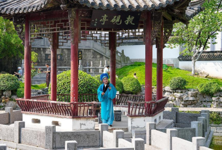 “聚山閣內(nèi)古琴揚,投硯亭外青衣舞”,無為廬劇市級傳承人朱德順在市米芾紀(jì)念館為廣大游客帶來廬劇選段《張?zhí)煨闼皆L》,廬劇演員翟迎娣演唱《秦雪梅觀畫》選段,是本次活動一大亮點。熟悉的唱腔、優(yōu)美的舞姿吸引一大批廬劇愛好者前來觀賞,游客們在景區(qū)內(nèi)沉浸式體驗一次傳統(tǒng)文化的魅力。