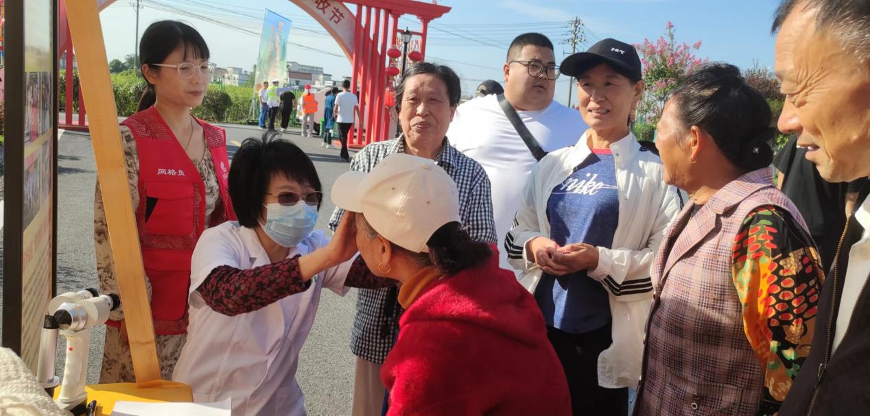 義診區(qū)也是熱鬧非凡?!熬Σ室暯纭毖劭屏x診為居民們檢查眼睛,提供專業(yè)的護(hù)眼建議。二十四節(jié)氣·秋分——中醫(yī)把脈問診處,中醫(yī)師們通過傳統(tǒng)的中醫(yī)診斷方法,為居民們分析身體狀況,給予養(yǎng)生調(diào)理的建議,讓大家在豐收的同時(shí)也關(guān)注自己的健康。