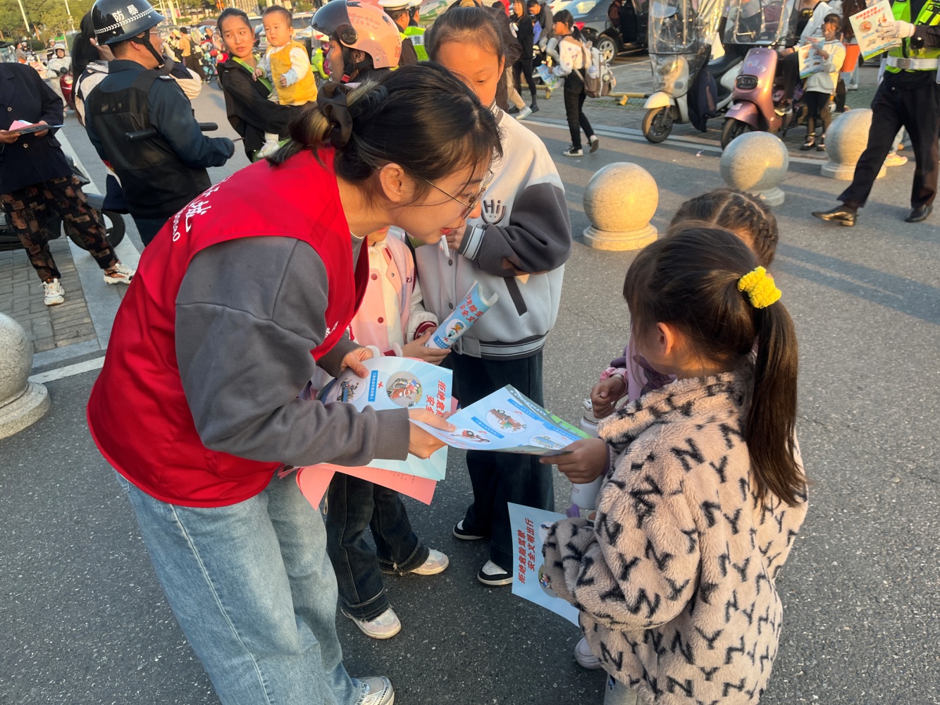 活動(dòng)現(xiàn)場(chǎng),抓住孩子們放學(xué)時(shí)機(jī),通過(guò)發(fā)放宣傳彩頁(yè)和一封信的方式,向孩子們普及道路交通安全知識(shí),特別強(qiáng)調(diào)小朋友“過(guò)馬路走斑馬線”“不橫穿馬路”“乘坐電動(dòng)車要佩戴安全頭盔”等重要事項(xiàng)。此外,志愿者還告訴孩子們回家后要提醒家長(zhǎng)不要亂停亂放車輛,騎電動(dòng)車要正確佩戴頭盔,喝酒不要開(kāi)車等交通安全常識(shí)。