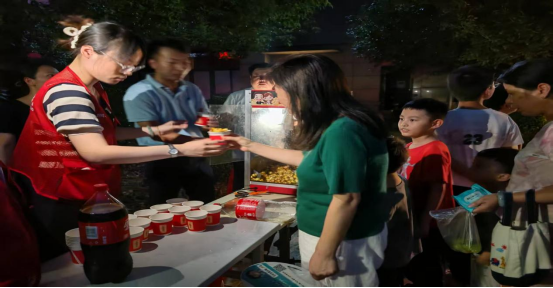 志愿者團隊在活動中也發(fā)揮了重要作用,他們?nèi)藤N心服務(wù)。義診攤位前,醫(yī)護志愿者一絲不茍地為居民測量血壓,并耐心地給予居民健康指導(dǎo)。另一邊,居民們圍坐在一起,在光影的流轉(zhuǎn)中,一同沉浸在精彩的劇情里,志愿者們熱心地將剛出鍋的爆米花與清涼飲料一一遞到居民手中,讓大家在享受歡樂時光的同時,也感受到無微不至的關(guān)懷。