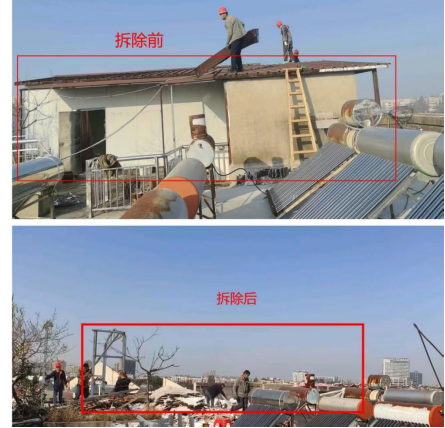 此外,無(wú)城鎮(zhèn)還同步推進(jìn)屋頂違建拆除、公共區(qū)域雜物清理等專項(xiàng)行動(dòng)——在部分小區(qū)屋頂,工作人員完成違建構(gòu)件拆除與垃圾清運(yùn),消除結(jié)構(gòu)安全與消防風(fēng)險(xiǎn);各社區(qū)同步啟動(dòng)長(zhǎng)效巡查機(jī)制,以“整治+鞏固”模式保障成果不反彈。