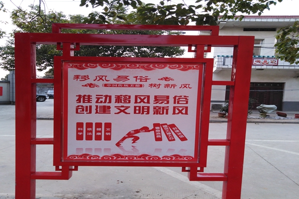 “倡導(dǎo)文明新風(fēng),共建美好家園”、“處處講公德,家家樹新風(fēng),村村更和諧”、“建立文明健康生活方式,提高衛(wèi)生意識(shí)”、“產(chǎn)業(yè)興旺、生態(tài)宜居、鄉(xiāng)風(fēng)文明、治理有效、生活富?!薄愃七@樣的廣告文明用語在十里墩鎮(zhèn)不難看見,字里行間倡導(dǎo)的是文明的理念,將移風(fēng)易俗、文明健康、綠色低碳、環(huán)境保護(hù)等新時(shí)代文明理念進(jìn)行生動(dòng)詮釋,散發(fā)出文明健康的氣息。該鎮(zhèn)在文明村鎮(zhèn)創(chuàng)建工作中,內(nèi)外兼修,在落實(shí)硬件基礎(chǔ)設(shè)施建設(shè)的同時(shí),強(qiáng)化宣傳引領(lǐng),深入開展移風(fēng)易俗創(chuàng)建宣傳。公益廣告、文化墻、宣傳欄形象直觀,美麗鄉(xiāng)村、黨建廣場、主干道路、綠化帶、建筑物立面等成為文明新風(fēng)宣傳的有效載體,成為老百姓身邊的“道德窗口”、“文化大餐”、“行為指南”, 傳播文明新風(fēng),潛移默化中提高了市民的道德修養(yǎng),引導(dǎo)廣大人民養(yǎng)成文明健康的生活方式,告別陳規(guī)陋習(xí),弘揚(yáng)社會(huì)正能量,深受老百姓的歡迎。