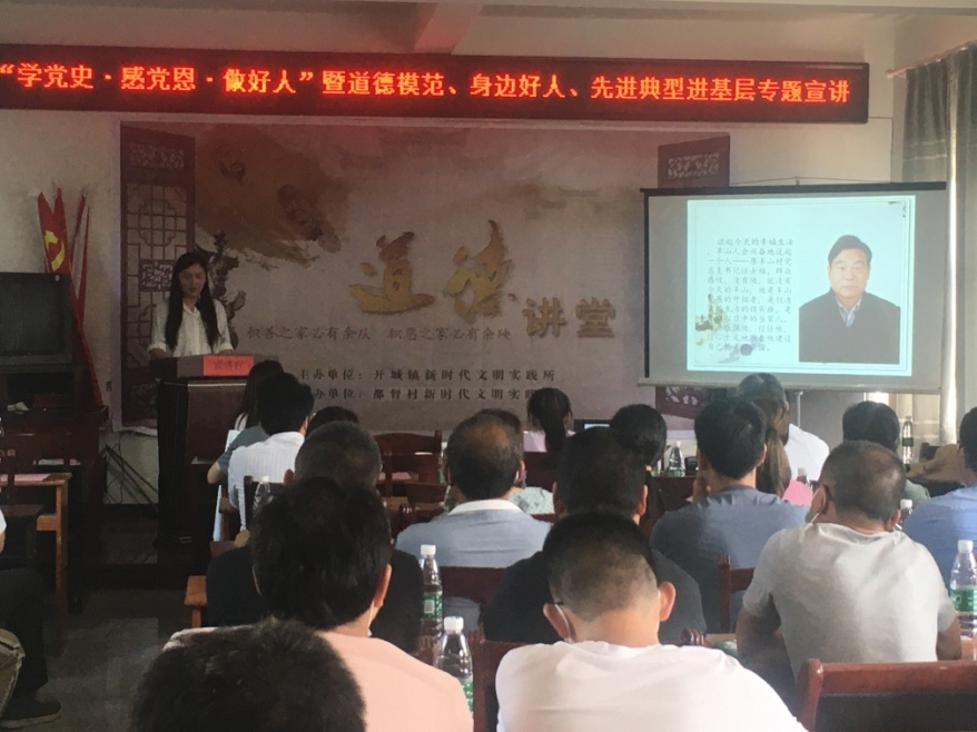 為將黨史學(xué)習(xí)教育走深走細走實,引領(lǐng)廣大黨員干部群眾學(xué)習(xí)黨的光輝歷史、感悟黨的初心使命、傳承黨的紅色基因,充分發(fā)揮模范好人在黨史學(xué)習(xí)教育中的先鋒示范作用,營造崇德尚善、向好人學(xué)習(xí)、向道德致敬的濃厚氛圍,5月31日下午,無為市開城鎮(zhèn)新時代文明實踐所在都督村舉辦“學(xué)黨史·感黨恩·做好人”暨道德模范、身邊好人先進典型進基層專題宣講活動。各村(社區(qū))、學(xué)校主要負責人、文明創(chuàng)建業(yè)務(wù)人員,鎮(zhèn)文明辦、文化站全體工作人員及鎮(zhèn)關(guān)工委等部門參加活動。