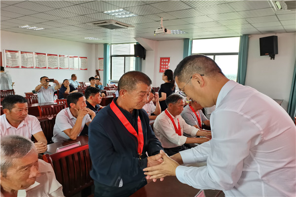 會(huì)上,鎮(zhèn)黨委書(shū)記曹昌芹向王書(shū)信、舒小友、王光昌、吳來(lái)全、吳春暉、劉仁懷、潘榮元、解老虎、陳克文、童澤華、劉義宏等11位“光榮在黨50年”紀(jì)念章獲頒者代表頒發(fā)了紀(jì)念章,并合影留念。