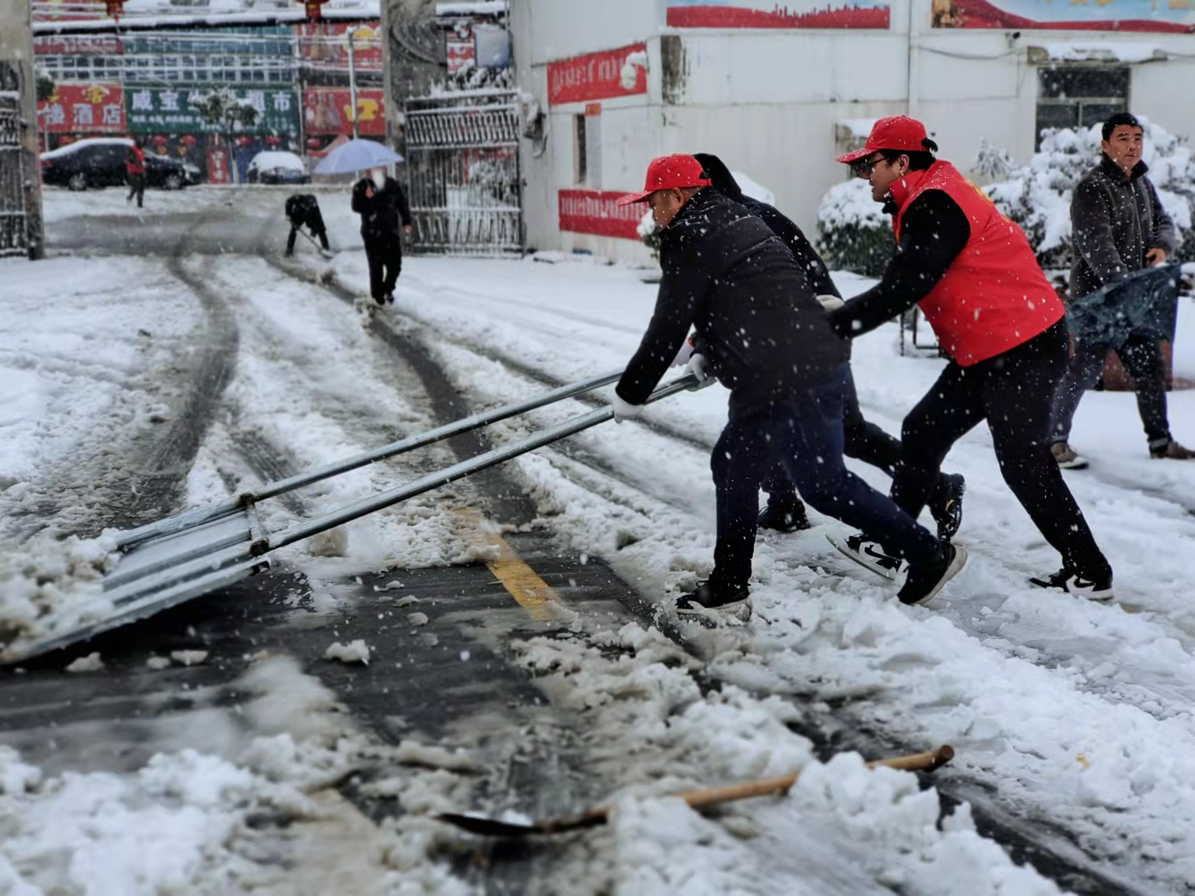 在整個掃雪除冰活動中,大家熱情高漲,不畏寒風(fēng)和雨雪,充分發(fā)揮了不辭辛苦服務(wù)群眾精神。大家紛紛拿上掃帚、鐵鍬、雪鏟等工具,掃積雪、鏟冰層、除路障,相互配合,整個過程組織有序忙而不亂。志愿者穿著紅色馬甲忙碌的背影與白茫茫的雪地構(gòu)成了一道靚麗的風(fēng)景線。在大家齊心協(xié)力、團結(jié)合作清掃下,很快便開辟出一條方便、安全的道路,極大地方便了大家的出行。