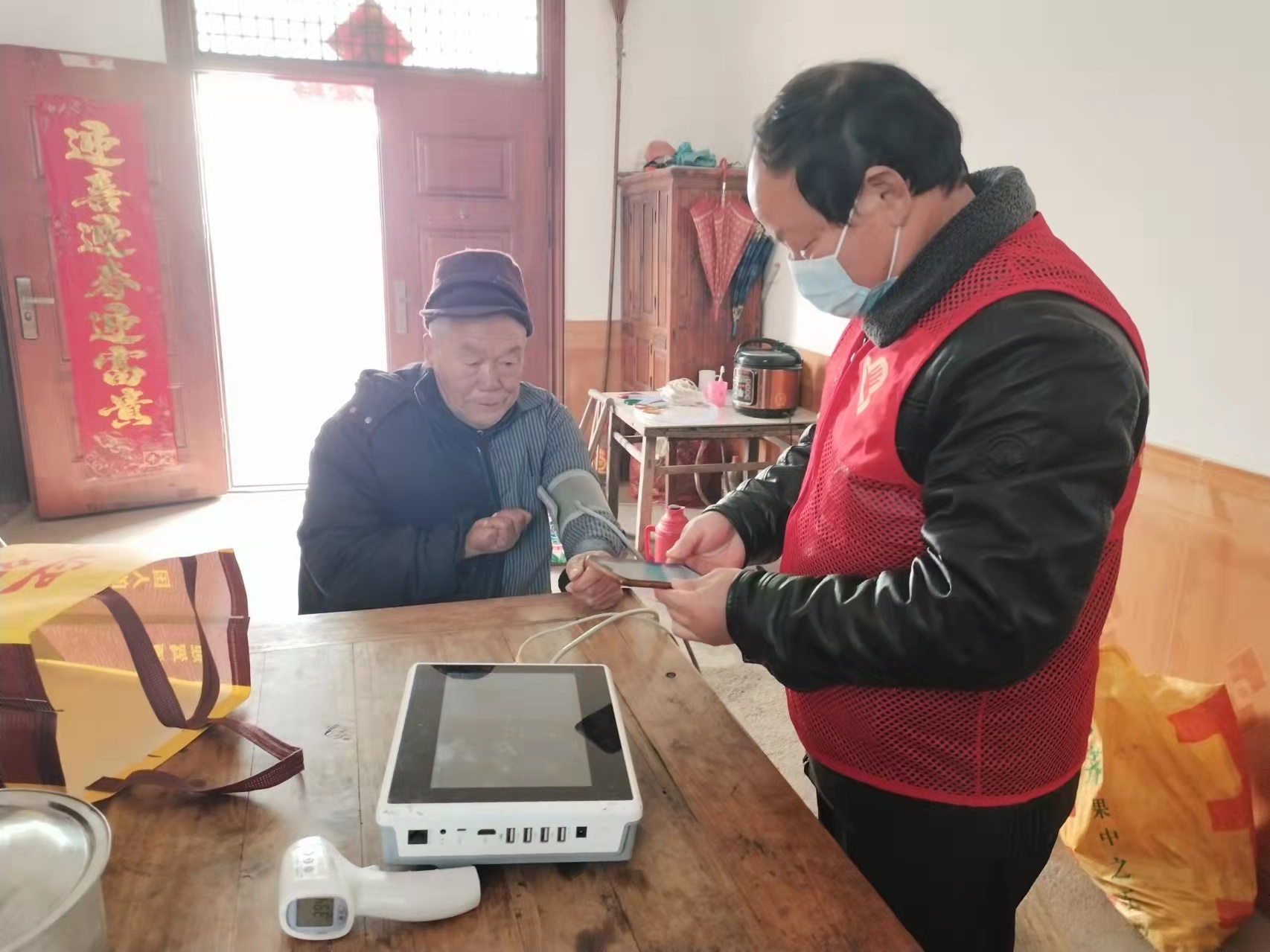 3月3日,橋頭村開展了“濟(jì)送健康”志愿服務(wù)活動(dòng)。邀請(qǐng)村衛(wèi)生室醫(yī)生上門為群眾義診,免費(fèi)測(cè)血壓、血糖,發(fā)放免費(fèi)健康手冊(cè),為老人提供一站式的便民服務(wù)。