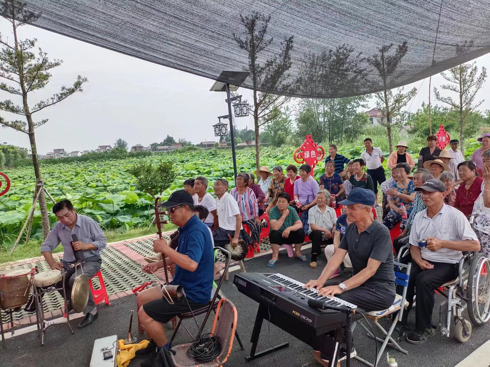 由無(wú)為市著名戲曲演員魏雙喜,李元蓮等老藝術(shù)家領(lǐng)銜的演出組,以扎實(shí)的功底、過(guò)硬的唱腔,為慶豐村人民送上一曲名為《花好月圓》廬劇。