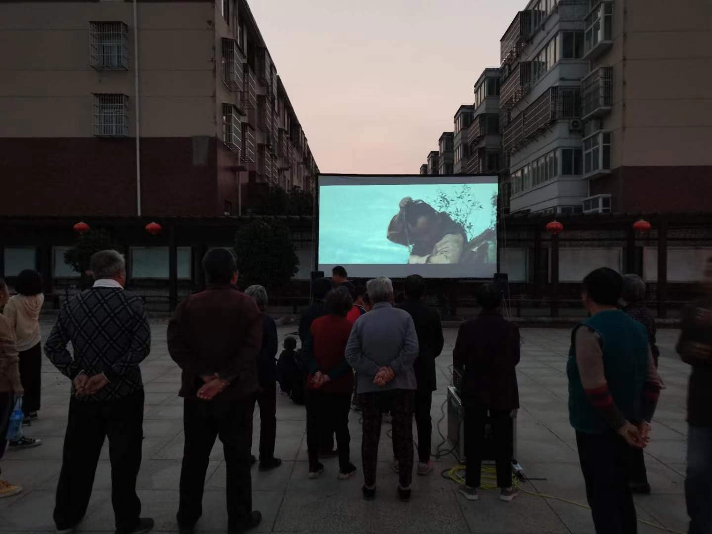 夜幕降臨,許久沒(méi)有看過(guò)露天電影的村民很早就圍坐在熒幕前,臉上洋溢著興奮之情。一塊幕布,一個(gè)音響,一個(gè)投影儀,把經(jīng)典紅色電影送到村民身邊,將紅色文化融入進(jìn)了他們喜聞樂(lè)見(jiàn)的文化活動(dòng)中。露天電影看的是感覺(jué),看的更是情懷,隨著如今生活水平的提高,每家每戶基本上都有電視,手機(jī)上也可以看電影、看抖音,但老一輩的人們?nèi)匀皇謶涯钚r(shí)候大家坐在一起露天看電影的情景,送電影下鄉(xiāng)活動(dòng)剛好滿足了他們的愿望。