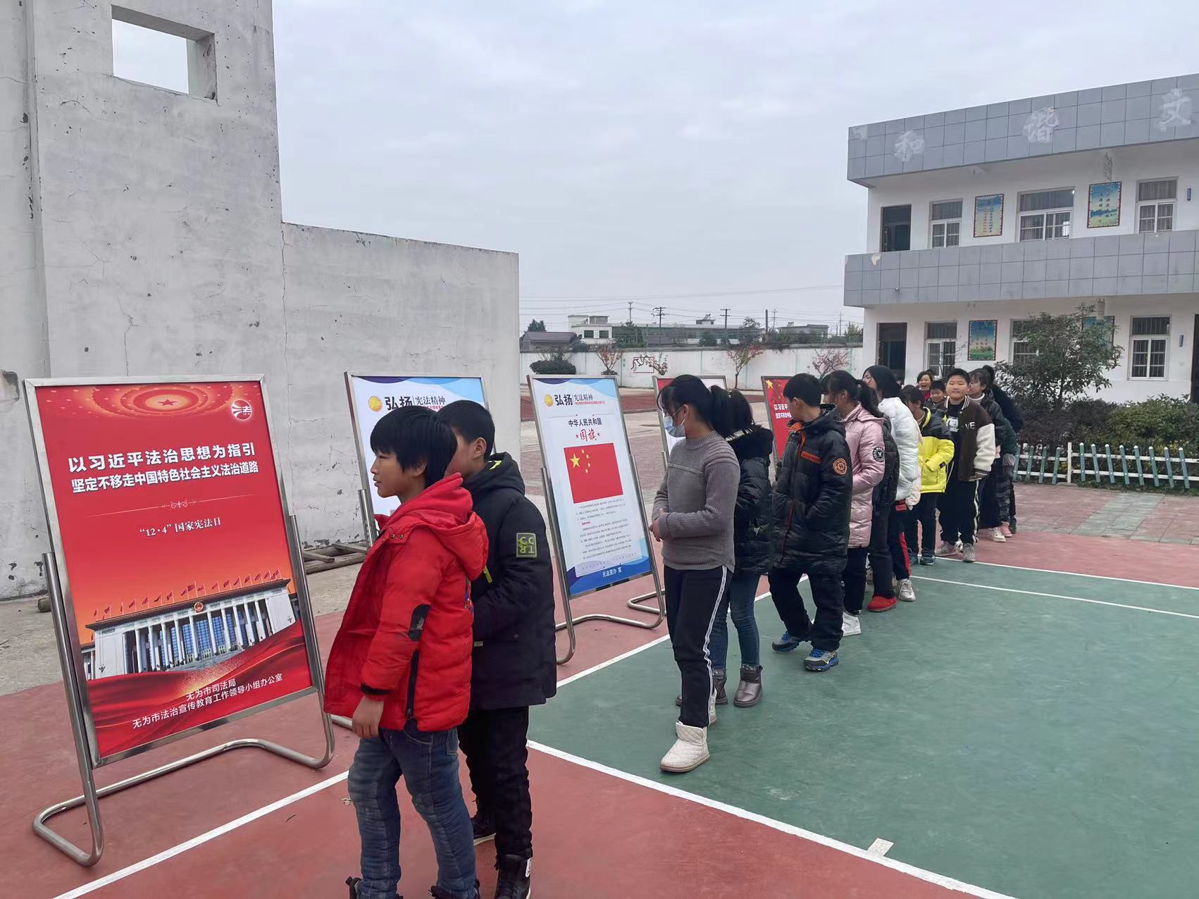 當(dāng)天下午,泥汊司法所還通過擺放展板的形式,向全校師生直觀展現(xiàn)我國憲法的歷程、國家憲法日的由來、國旗、國歌、國徽等內(nèi)容,增進(jìn)廣大師生對憲法知識的了解,牢固樹立憲法至上的理念,讓全面貫徹實施憲法,更好發(fā)揮憲法在治國理政中重要作用的思想在小學(xué)生心中生根發(fā)芽。