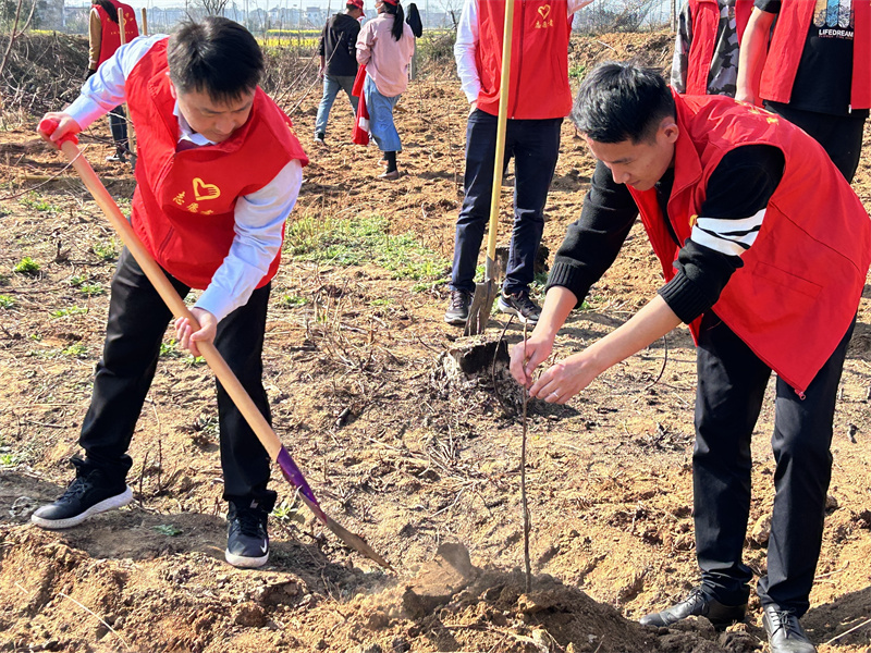 義務(wù)植樹添新綠。陽春三月,草木蔓發(fā),正是植樹播綠好時(shí)節(jié)。3月10日上午,鎮(zhèn)機(jī)關(guān)干部、黨員、團(tuán)員等20余名志愿者,來到石羅山義務(wù)植樹點(diǎn),開展“相約春天,你我同行”志愿服務(wù)活動(dòng),為大地添一抹新綠,為家園植一份美好。經(jīng)過近兩個(gè)小時(shí)的辛勤勞作,10余畝荒地被一屢屢綠意點(diǎn)綴,新栽的100余棵山核桃樹苗錯(cuò)落有致、迎風(fēng)而立,在陽光下煥發(fā)出蓬勃生機(jī),流露出無限春意。