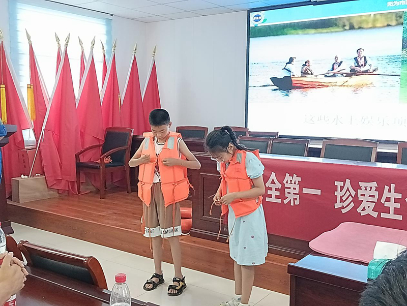 圖為學(xué)生代表穿戴救生衣