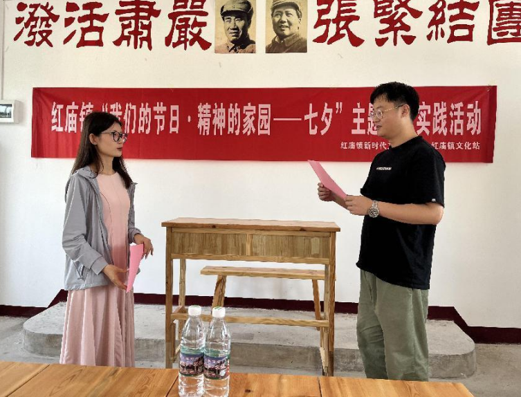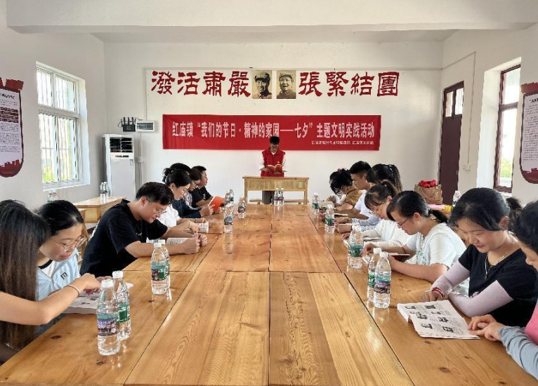 七夕今宵看碧霄,牽??椗珊訕颉橐龑?dǎo)青年人樹立正確的戀愛(ài)觀婚姻觀家庭觀,傳承“七夕”傳統(tǒng)民俗,弘揚(yáng)優(yōu)秀紅色文化,8月21日,紅廟鎮(zhèn)新時(shí)代文明實(shí)踐所聯(lián)合鎮(zhèn)文化站、婦聯(lián)以及無(wú)為市摩恩文旅公司,結(jié)合七夕節(jié)以及黨史學(xué)習(xí)教育,在抗大十分校開(kāi)展“我們的節(jié)日·精神的家園——七夕”主題文明實(shí)踐活動(dòng)。