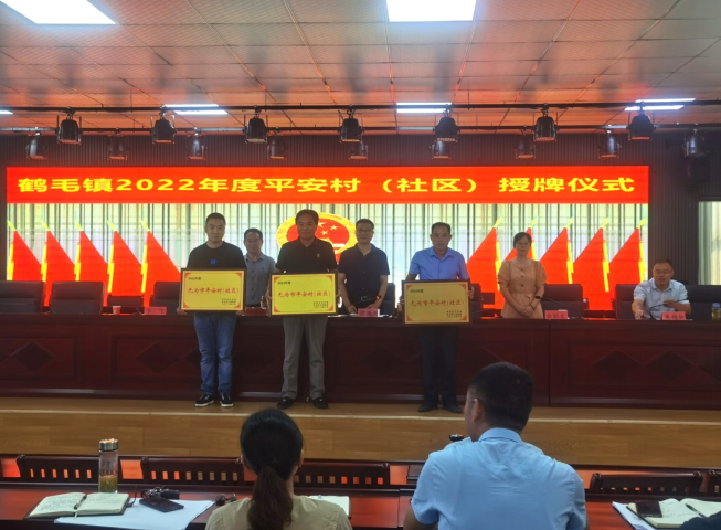 為鞏固平安創(chuàng)建成效,營造創(chuàng)先爭優(yōu)的良好氛圍。近日,鶴毛鎮(zhèn)舉行2022年榮獲市級“平安村(社區(qū))”授牌儀式。
