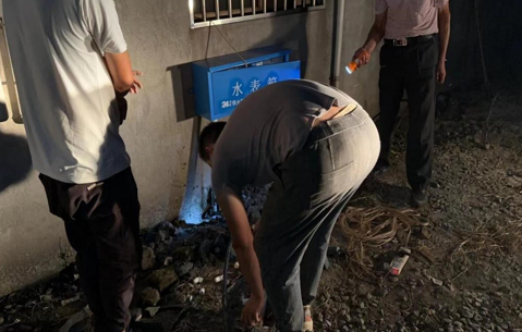 (圖為工作人員在對(duì)7個(gè)自然村,143戶村民進(jìn)行的水路改造工作完成后,進(jìn)行安裝水表,并逐戶排查是否有漏水之處,測(cè)試水壓,進(jìn)行二次檢查與修理。)