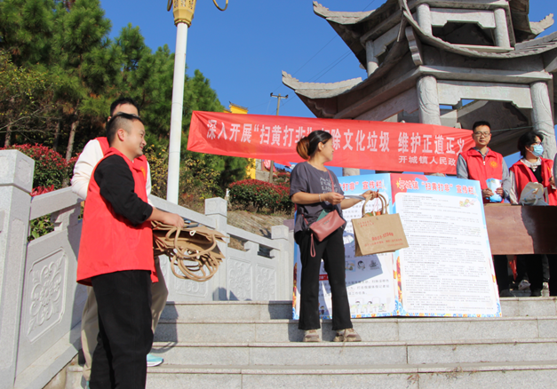 金秋十月,丹桂飄香,秋季西九華廟會(huì)也如火如荼地進(jìn)行,開城鎮(zhèn)在廟會(huì)開展之際,進(jìn)行了一次“掃黃打非”專項(xiàng)宣傳活動(dòng)。此次活動(dòng)旨在進(jìn)一步凈化社會(huì)風(fēng)氣,維護(hù)文化市場(chǎng)的繁榮與穩(wěn)定,以廟會(huì)為平臺(tái),向廣大群眾普及“掃黃打非”的相關(guān)知識(shí)。