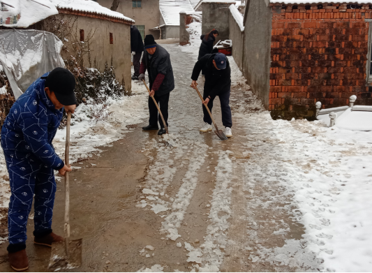 鏟雪現(xiàn)場,寒風(fēng)瑟瑟,大家發(fā)揚不怕苦不怕累的精神,不畏嚴(yán)寒、積極行動,拿上鐵鍬、掃帚等工具,對村周圍道路設(shè)施及娛樂活動場地的積雪清理,為村民營造出干凈整潔的出行環(huán)境,消除安全隱患。天氣雖然寒冷,但大家干勁十足,相互配合,不一會兒工夫,積雪就被鏟除干凈。