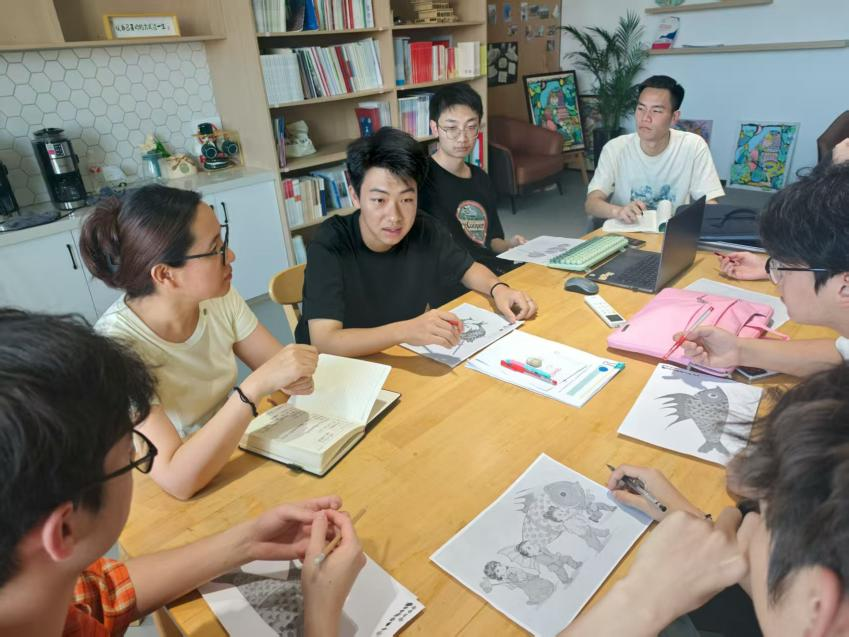 妙筆繪燈影,非遺煥新顏。實踐團(tuán)以承載百姓豐收、平安、吉祥祈愿的無為魚燈為核心元素,深入挖掘其民俗內(nèi)涵。學(xué)子們運(yùn)用現(xiàn)代設(shè)計語言,將傳統(tǒng)魚燈文化進(jìn)行創(chuàng)新性藝術(shù)轉(zhuǎn)化?!拔覀兿M馨阳~燈這一民俗‘翻譯’得讓更多人看懂、喜歡?!必?fù)責(zé)主視覺構(gòu)圖的2024級視覺傳達(dá)專業(yè)學(xué)生陳浩然介紹道。他們在設(shè)計中巧妙融入節(jié)日元素,力求畫面既展現(xiàn)文化底蘊(yùn),又富有親切感與時代氣息,讓沉睡的非遺在墻面上煥發(fā)出勃勃生機(jī)。