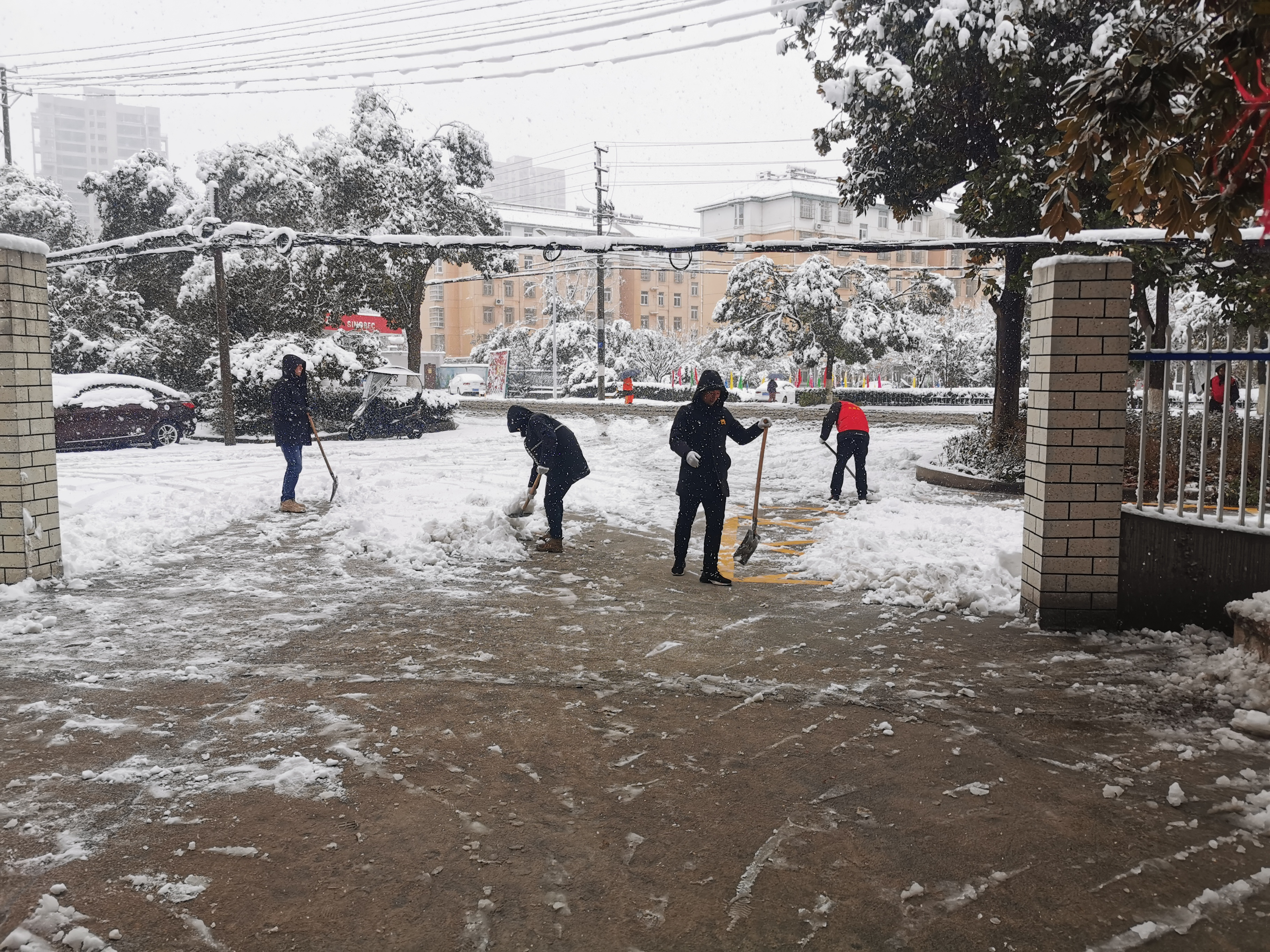 2月6日夜間至2月7日早上11:00時(shí),我市區(qū)域普降大雪,根據(jù)氣象部門測(cè)量,我市降雪量已達(dá)18厘米,市氣象局發(fā)布暴雪橙色預(yù)警,預(yù)計(jì)今天白天大雪,局地暴雪。為及時(shí)消除昨日大雪造成的安全隱患,確保群眾出行安全,無(wú)為市應(yīng)急管理局立即行動(dòng),出動(dòng)全體機(jī)關(guān)人員對(duì)單位門口和包保路段積雪進(jìn)行掃除。