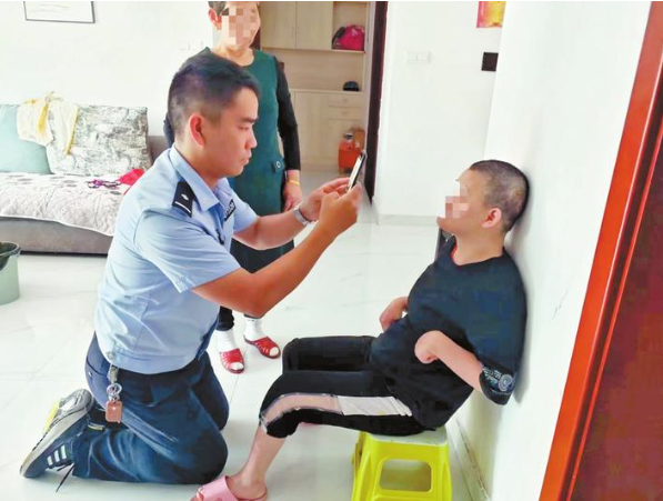 由于張某沒有有效的二代居民身份證件,將直接導(dǎo)致她無法就醫(yī)買藥、辦理銀行卡及社??ǖ?。分管戶籍業(yè)務(wù)的副所長(zhǎng)萬多志得知后,第一時(shí)間與當(dāng)事人張某的姐姐商定好,于當(dāng)日15時(shí)許,由他帶領(lǐng)戶籍民警邰翔上門為行動(dòng)不便的張某采集照片,再為她辦理二代居民身份證相關(guān)手續(xù)。由于張某身體不便,戶籍民警邰翔在采集照片時(shí)只能跪地操作(如圖)。