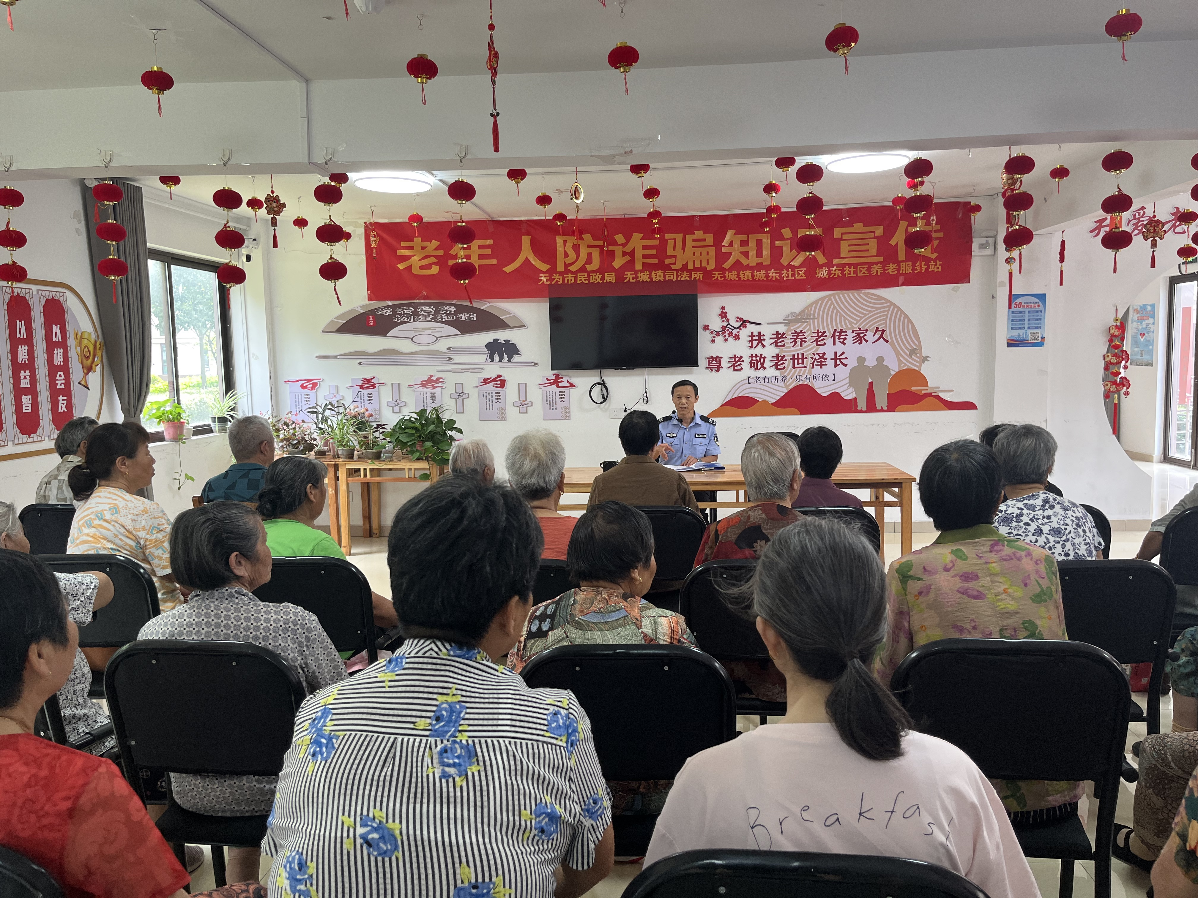 近日,無城鎮(zhèn)司法所聯(lián)合無為市民政局、城東社區(qū)在轄區(qū)養(yǎng)老服務站開展“炎炎夏日送‘清涼’反詐知識護‘銀齡’”主題反詐活動,為老年人送上一份特殊的“防詐避暑攻略”。