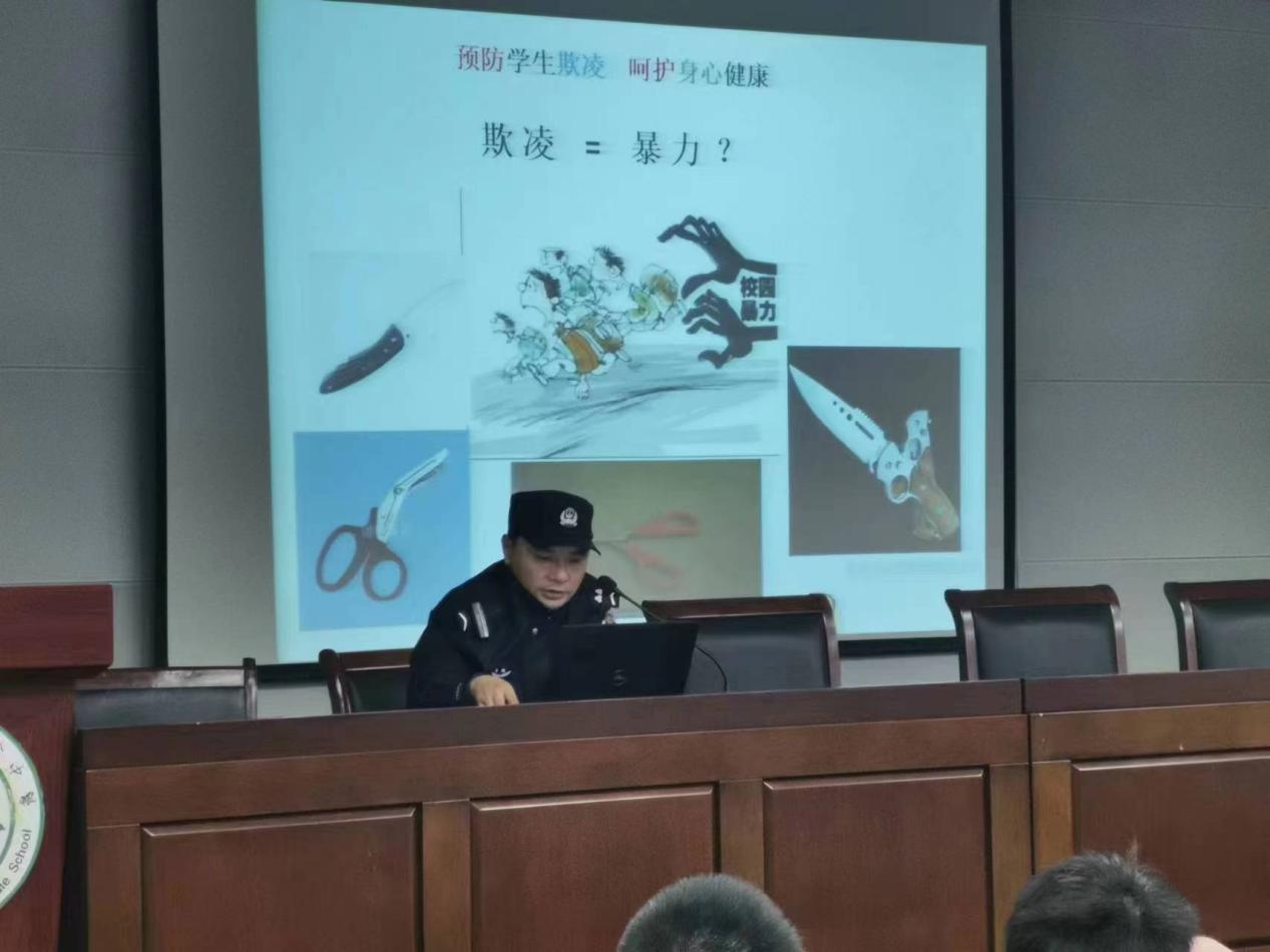 宣講警官通過真實案例向?qū)W生們講解“什么是校園欺凌”,“校園欺凌有哪些形式”,“如果你遇到校園欺凌,該怎么辦”三個方面以案說法,以案釋法,讓同學(xué)們真切認(rèn)識校園欺凌的危害,提高自我保護能力,不做欺凌者,不做受害者,不做附和者和冷眼旁觀者,當(dāng)被欺凌時,要勇敢說“不”,同學(xué)之間要互助友愛,做積極陽光的少年,健康快樂的成長。
