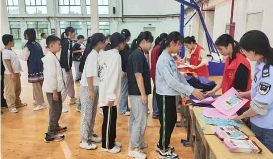 活動分為兩個環(huán)節(jié)。第一環(huán)節(jié)由志愿者及司法所工作人員有序的為學生發(fā)放宣傳手冊、倡議書和書簽,同時圍繞著《未成年人保護法》中幾個常見的法律條文,結合《民法典》的有關內容,以及實際生活中發(fā)生的真實案例,為學生們介紹了幾種常見的、多發(fā)的、危害性大的非法侵害行為及相應的防范措施。例如遇到校園暴力時應該先保護自身安全,在脫身后向監(jiān)護人或老師反映情況尋求幫助。通過普及遇到侵害怎么處理?如何利用法律來維護自己的合法權益?從而提高學生的法制觀念,提升處理非法侵害行為的能力。活動第二環(huán)節(jié)為“留痕”。讓學生留下自己的簽名,意在讓學生將今天下午嘴上說的,手里發(fā)著的,在筆下留痕,更在心里留痕。