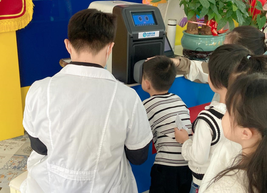 幼兒階段是視力發(fā)育的重要時(shí)期,然而隨著科技發(fā)展,各類電視、電腦、手機(jī)的遍及,幼兒的視力普遍下降。面對幼兒近視呈現(xiàn)高發(fā)、低齡化趨勢的現(xiàn)象,為精準(zhǔn)掌握在園幼兒視力健康狀況和視力變化情況,促進(jìn)幼兒健康成長,11月3日上午,無城鎮(zhèn)龍?jiān)粕鐓^(qū)陶行知幼兒園邀請到“光明蕪湖眼健康”行動(dòng)項(xiàng)目組為全園幼兒進(jìn)行了視力篩查。